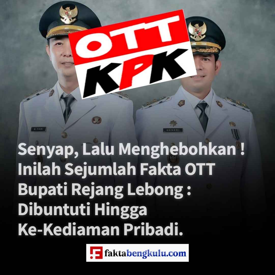 Bengkulu, Rejang Lebong, Faktabengkulu.com – Publik Provinsi Bengkulu dikejutkan dengan operasi senyap yang dilakukan Komisi Pemberantasan Korupsi (KPK) terhadap pucuk pimpinan Kabupaten Rejang Lebong. Bupati Rejang Lebong, M. Fikri Thobari, bersama Wakil Bupati Hendri Praja, resmi diangkut ke Jakarta pada Selasa pagi (10/3/2026) setelah terjaring Operasi Tangkap Tangan (OTT).